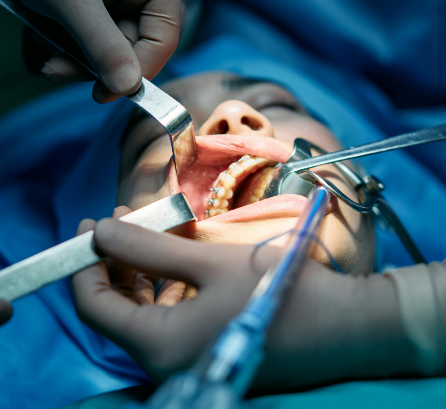 Tooth extraction is one of the most common surgical procedures. A simple extraction involves removing a visible tooth using local anesthetic and specialized instruments. For more complex cases, such as impacted or severely damaged teeth, a surgical extraction may be necessary. This can include making a small incision in the gum or removing a small amount of bone to safely access the tooth. In some cases, sectioning — dividing the tooth into smaller pieces — allows for a gentler and more controlled removal. We prioritize Painless tooth pulling techniques to minimize discomfort and promote faster healing.
